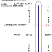 Der Gefrierpunkt ist nur abhängig von der Konzentration der gelösten Substanzen. Je höher diese Konzentration ist, umso tiefer ist der Gefrierpunkt. Reines Wasser hat einen Gefrierpunkt von 0°C
